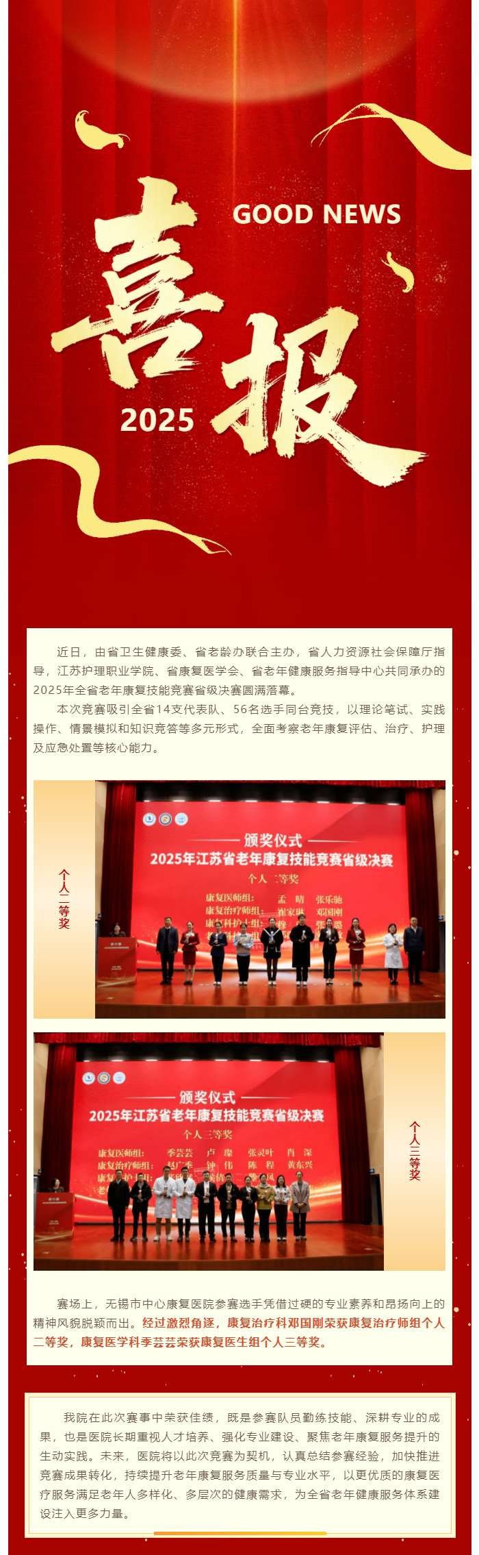 省赛捷报!我院在2025年江苏省老年康复技能竞赛省级决赛中斩获佳绩
