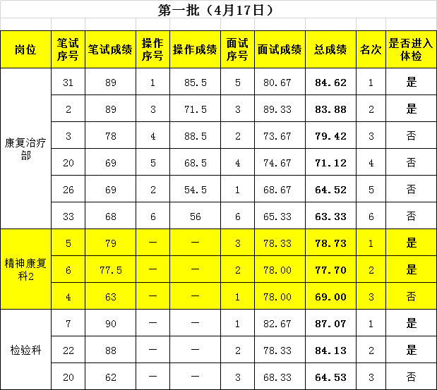2019年编外人才招聘综合测试成绩公示