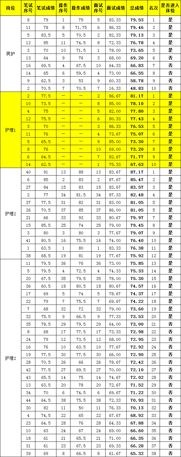 2019年编外人才招聘综合测试成绩公示第二批(4月18日)