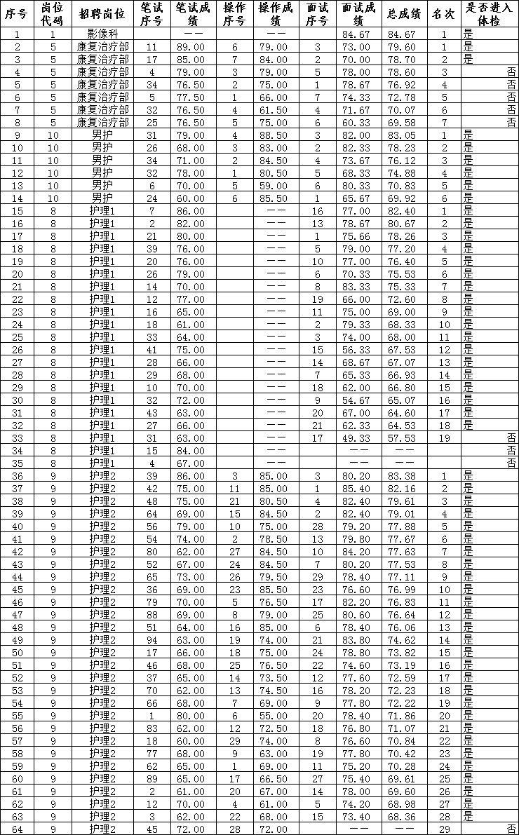 2020年第一批编外人才公开招聘综合考核测试成绩公示