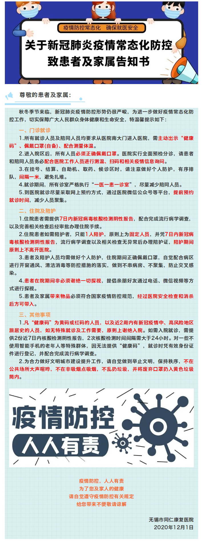关于新冠肺炎疫情常态化防控致患者及家属告知书